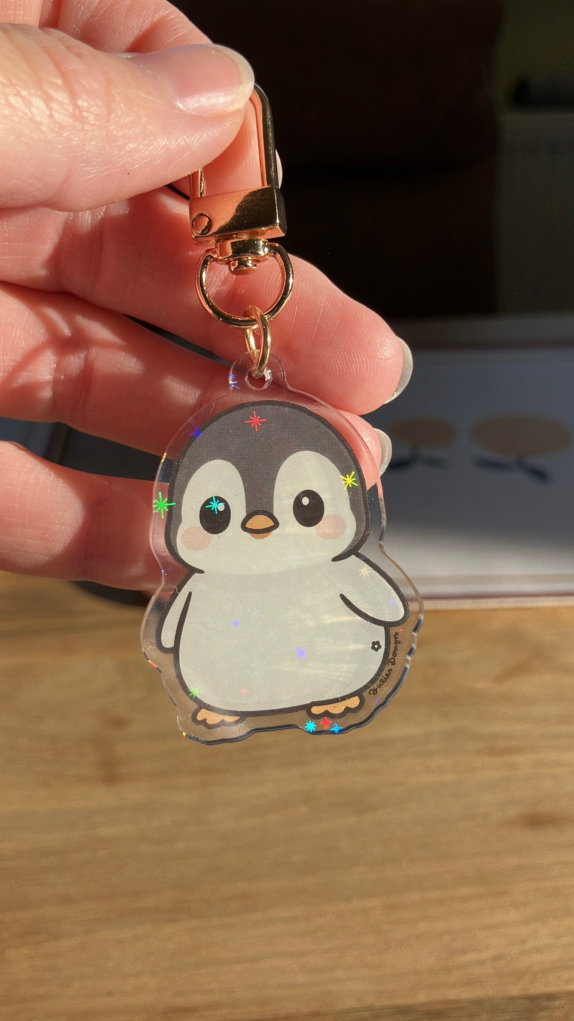 Meinen süßen Babypinguin gibt es ab sofort auch als Schlüsselanhänger, natürlich mit der tollen Sternenglitzerfolie passend zu den Stickern.