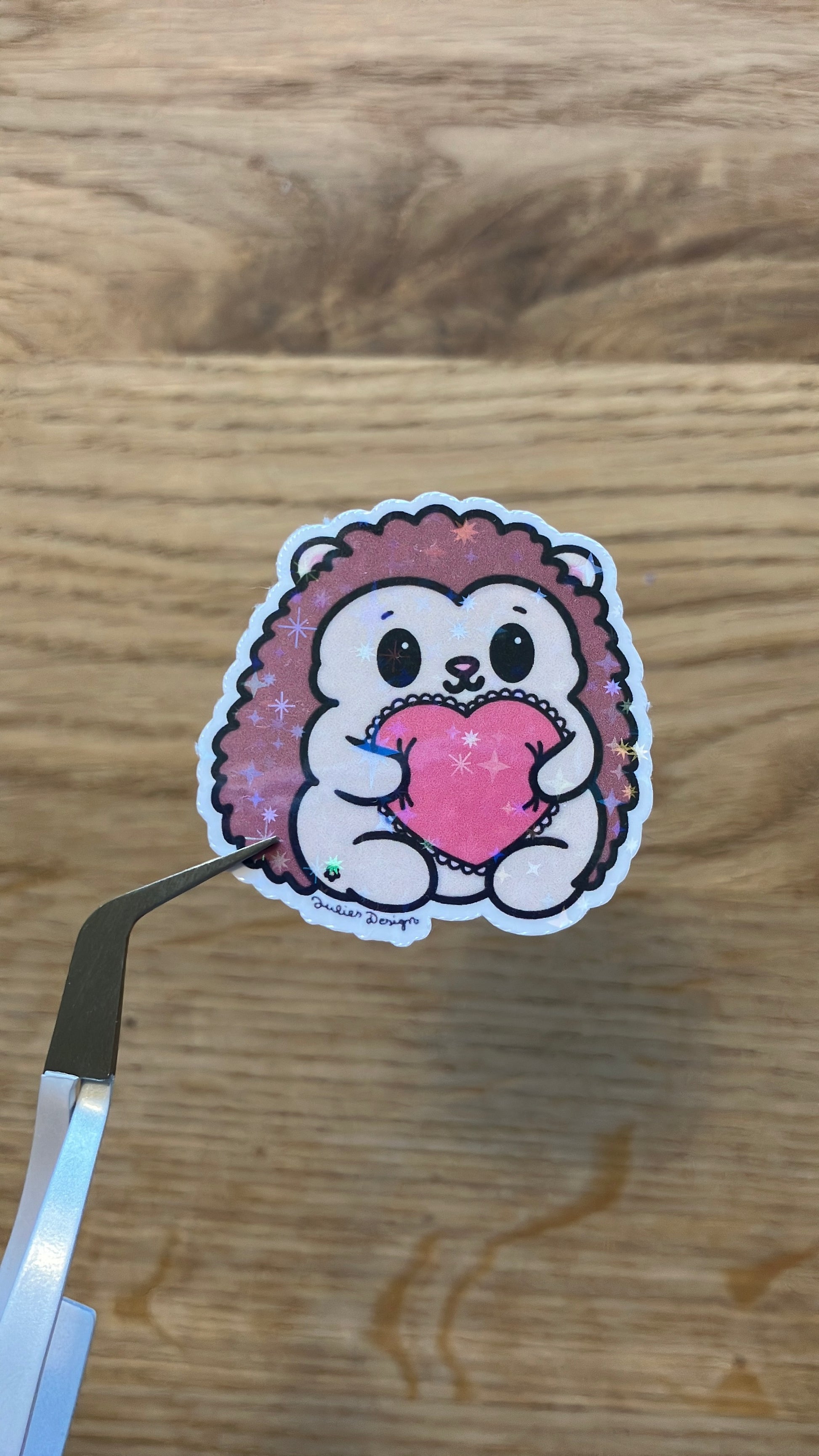 Igel mit Herzkissen Sticker im kawaii Stil mit Sternen-Holo